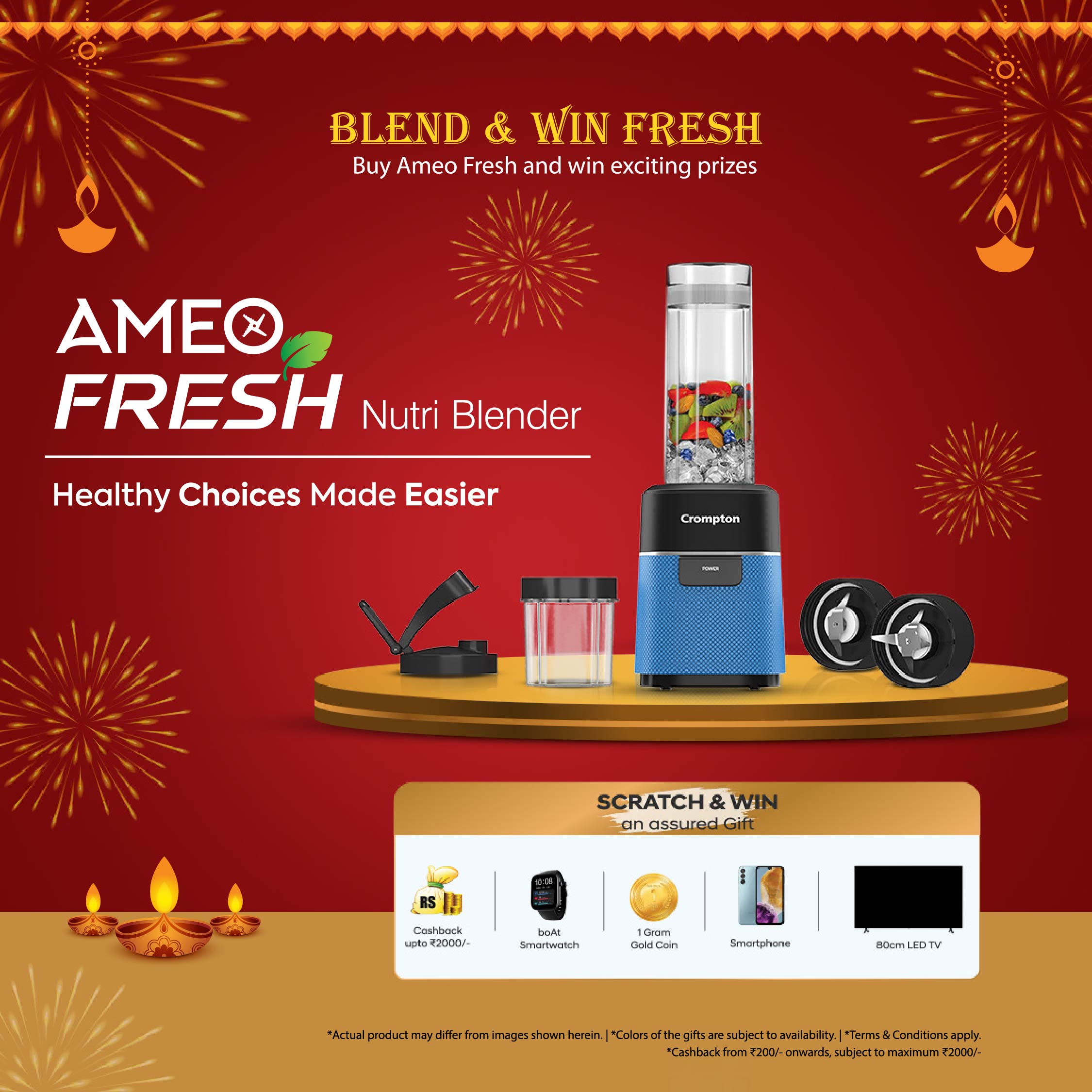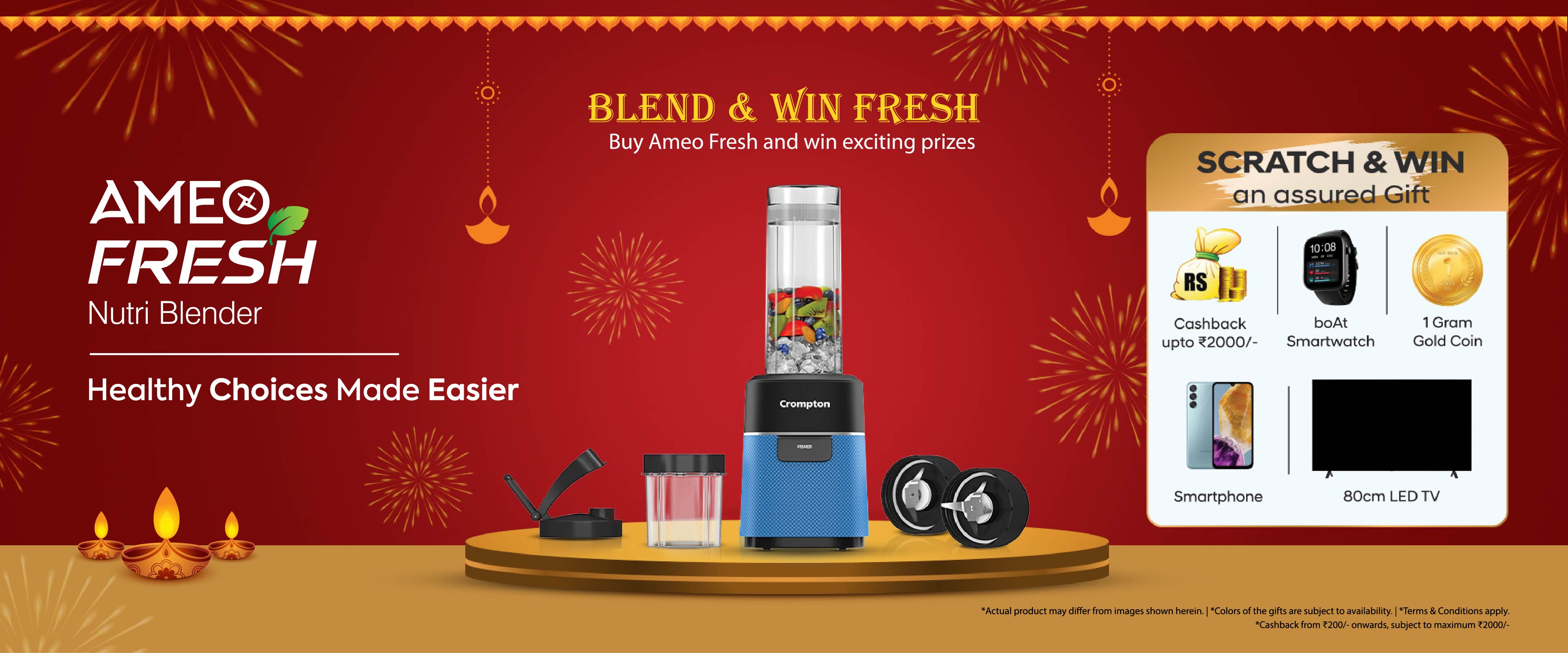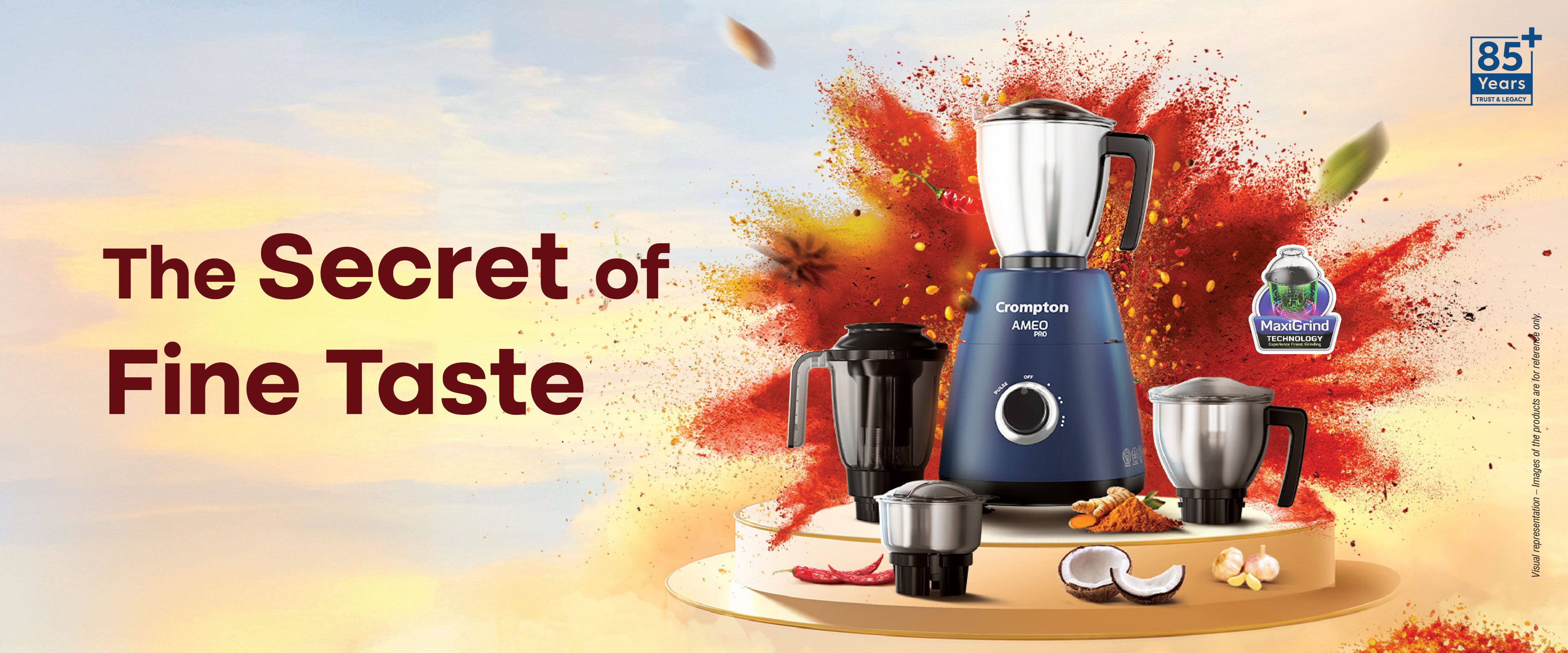 Crompton's mixer grinder are ergonomically designed for better space utilization in your kitchen. Their compact form factor not only saves space but also adds a touch of elegance to your kitchen decor. Additionally, our range includes leakproof and stainless-steel jars of different sizes and comfortable handles for minimizing mess and offering ease during grinding tasks.