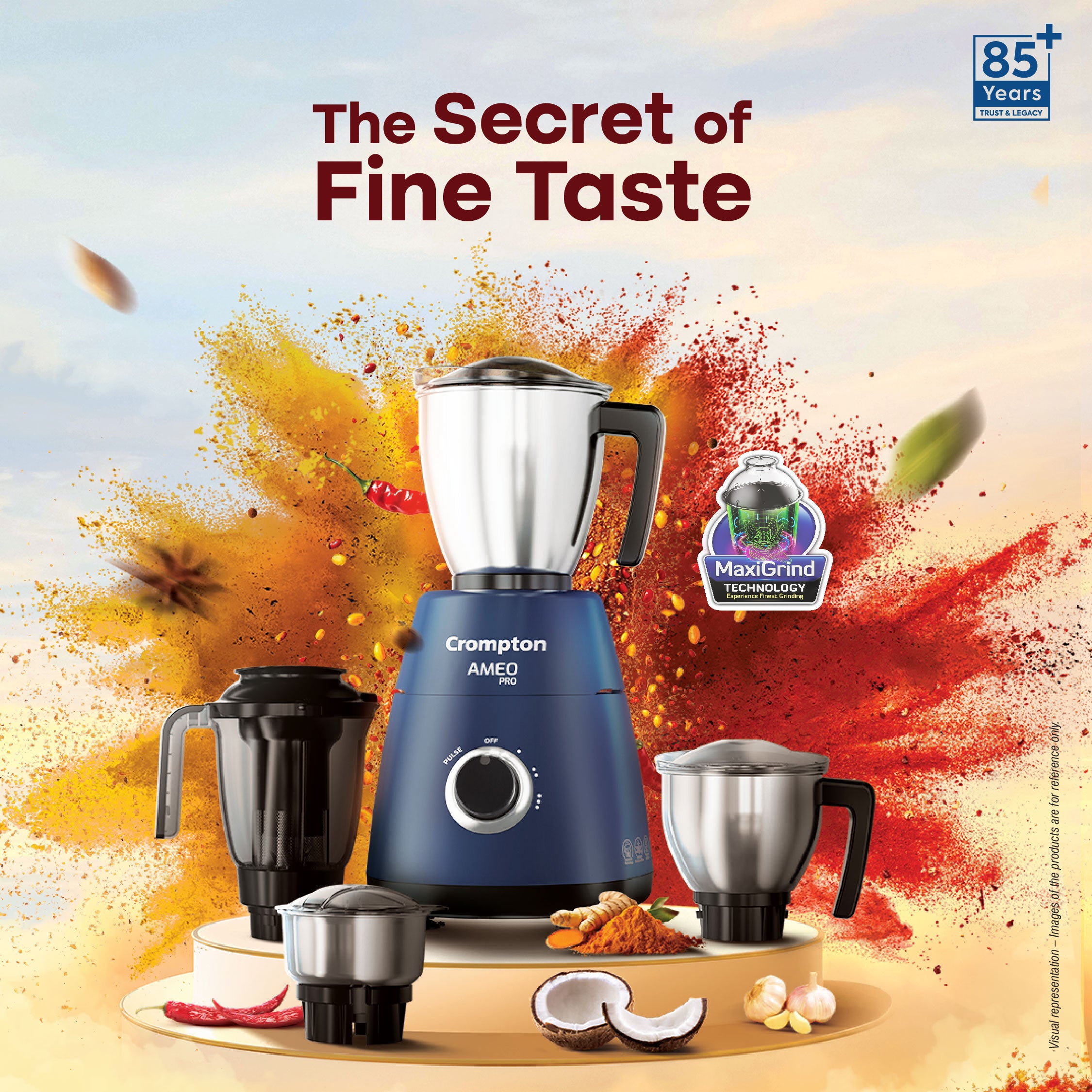 MaxiGrind Technology, an innovation in Crompton’s mixer grinders, delivers a fine grinding result as compared to regular mixer grinders. The unique jar contours and blade design ensures minimum dead spaces and facilitates the radial and axial flow for faster and superior grinding.