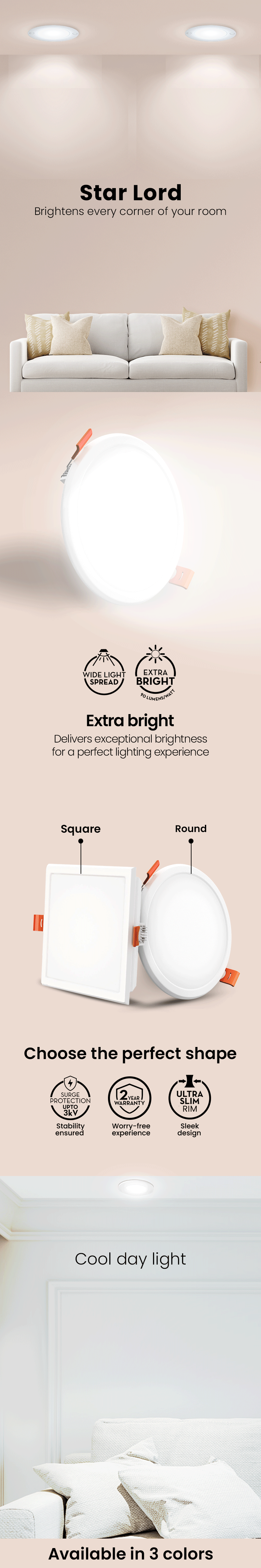 Illuminate your world with extra brightness with Star Lord. Equipped with surge protection, it's built to withstand electrical fluctuations. Enjoy peace of mind with a generous 2-year warranty. The Star Lord's super-slim panel design seamlessly blends with any decor, adding a touch of sophistication to your ambiance while lighting up your life.
