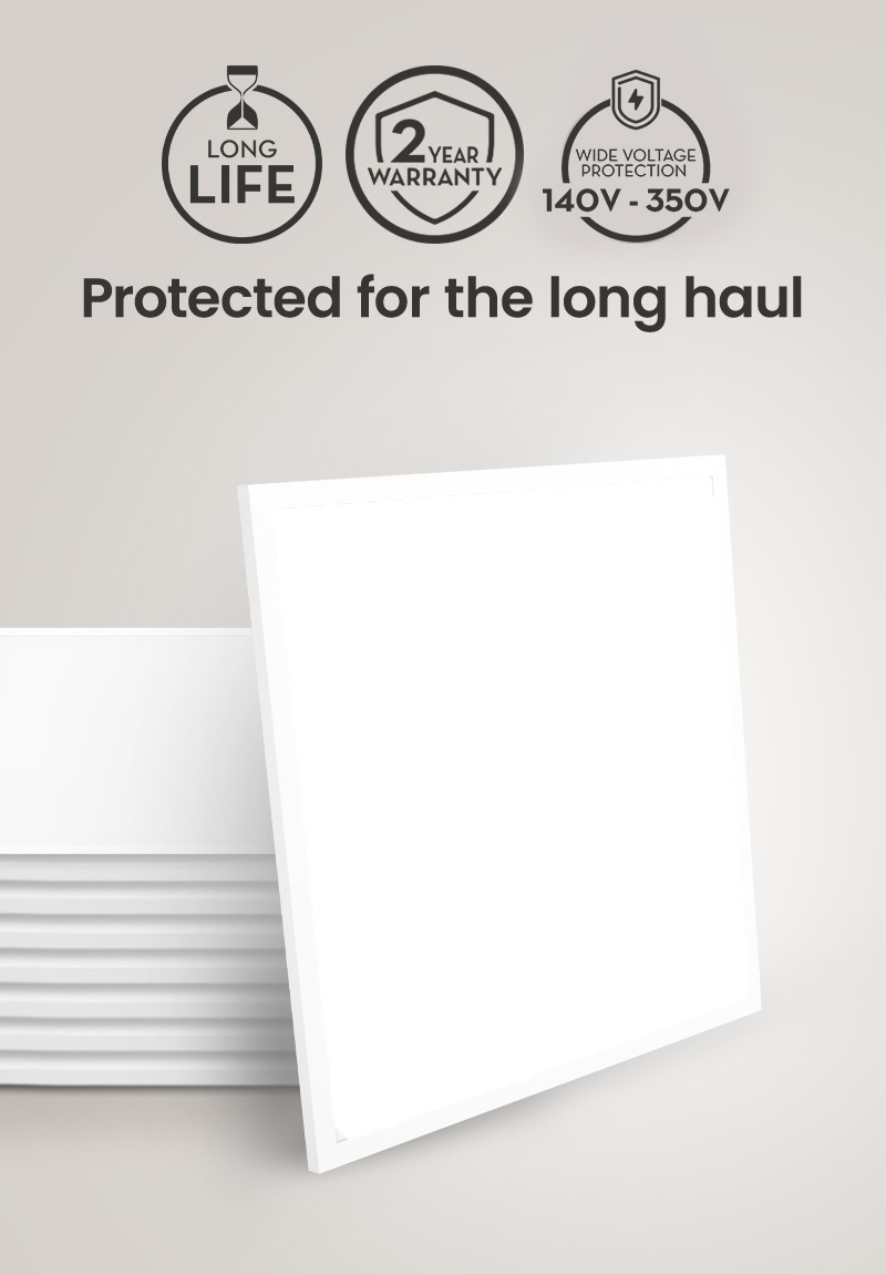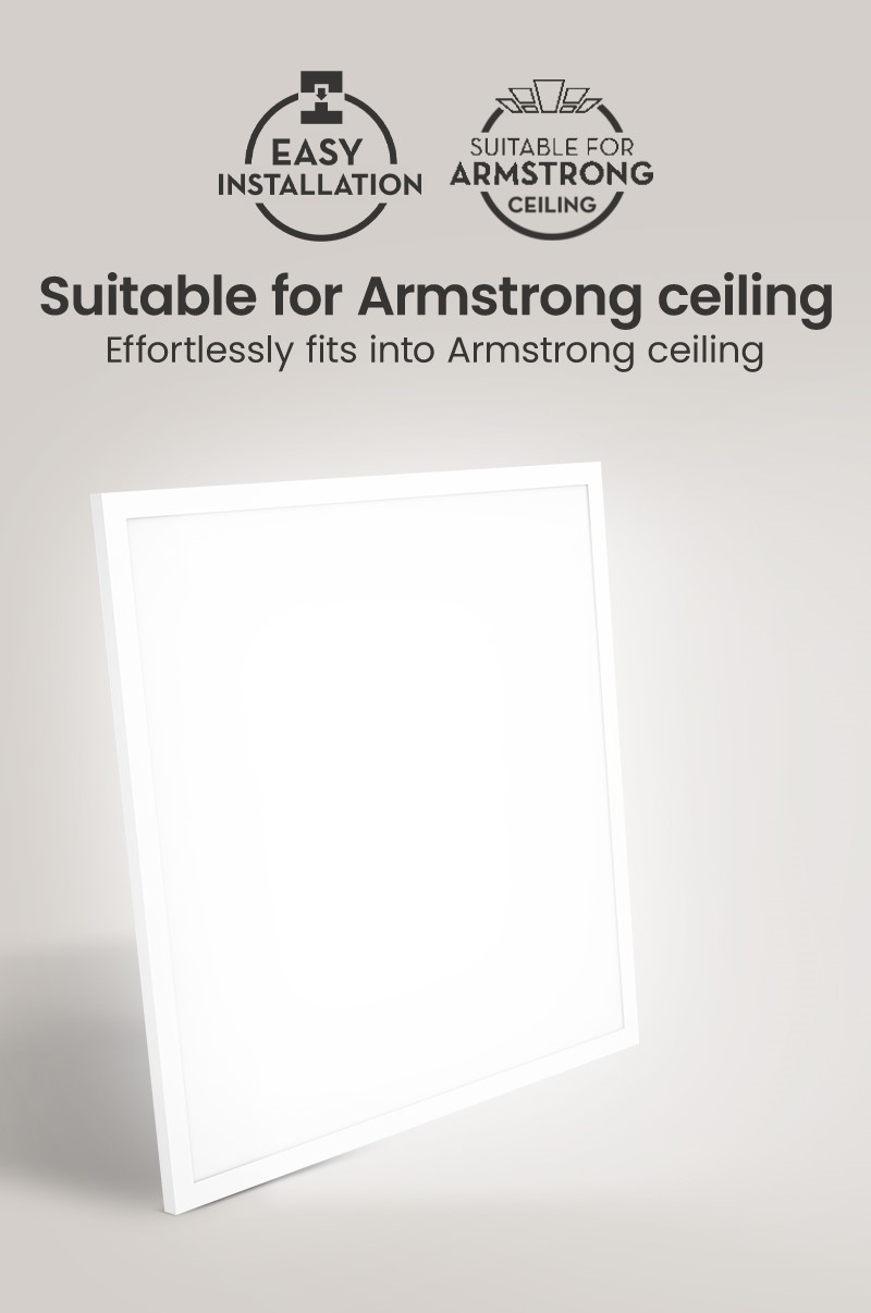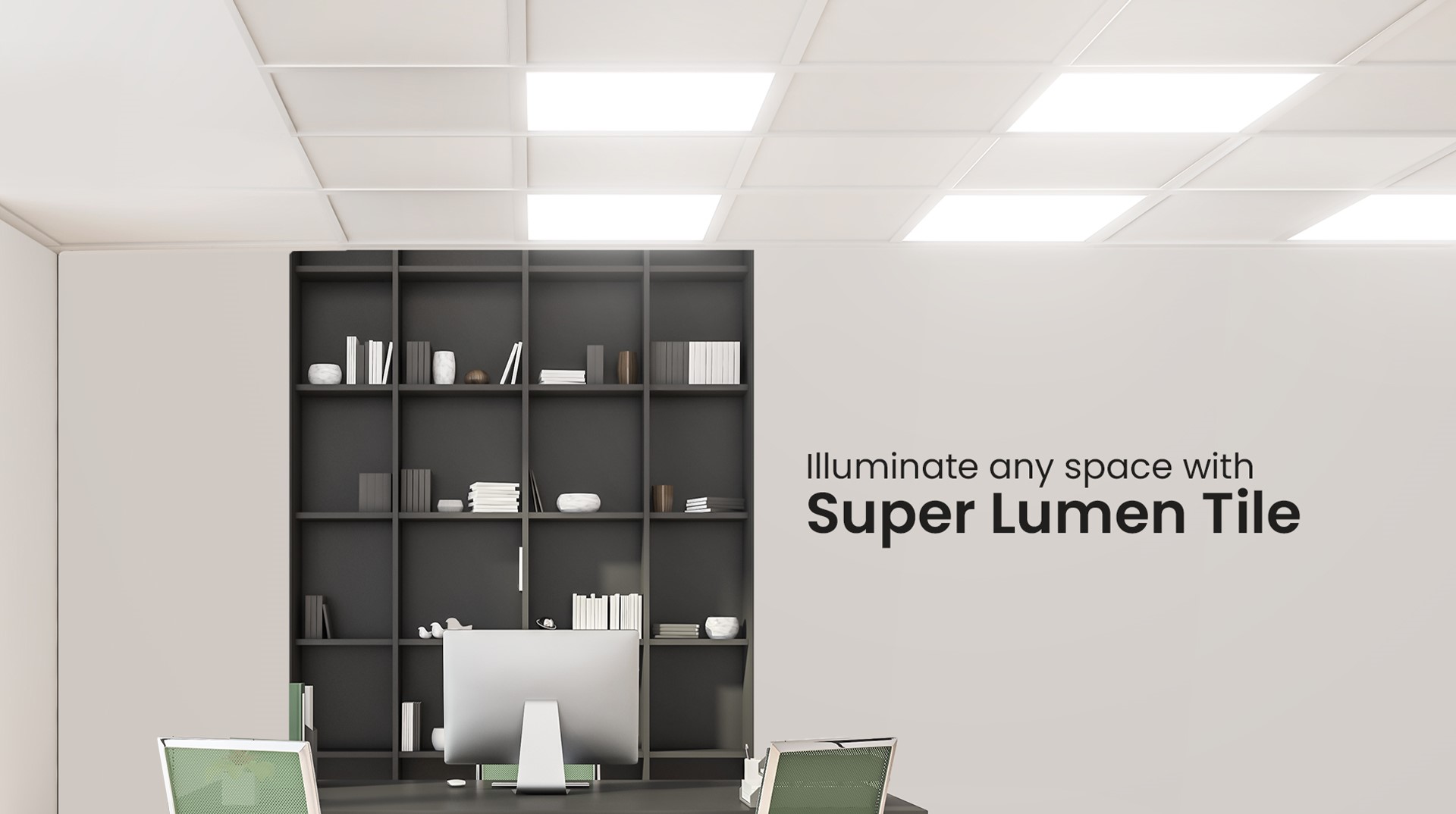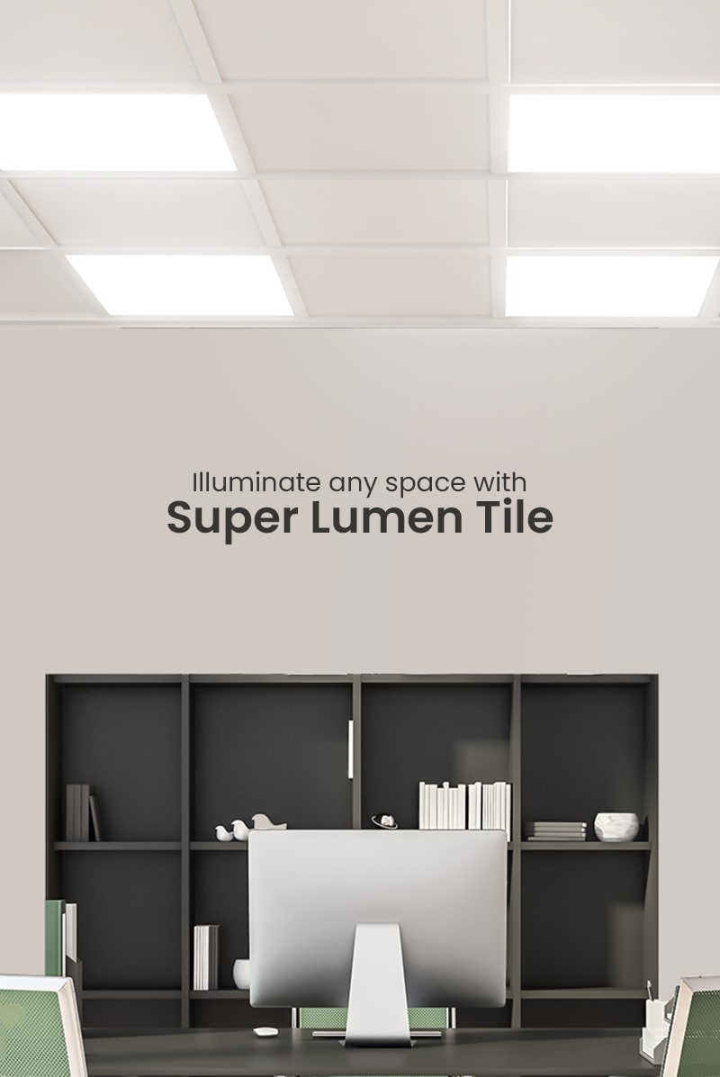 Introducing the 2x2 Super Lumen Tile, your ceiling's radiant upgrade. With its extraordinary brightness, it transforms any space into a well-lit haven. Designed for Armstrong ceilings, it seamlessly blends style and functionality. Enjoy peace of mind with a generous 2-year warranty. Plus, its wide voltage protection ensures stable illumination.