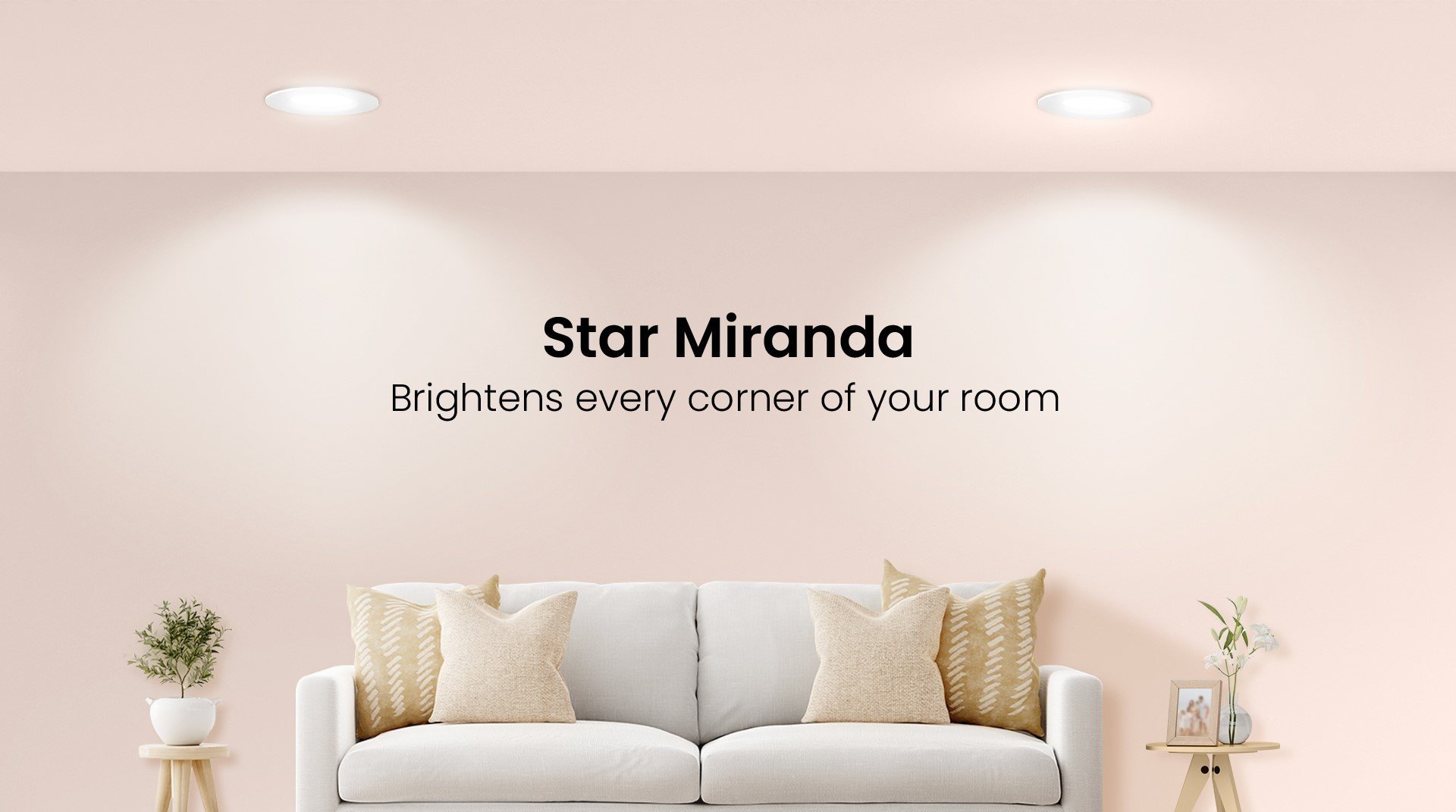 Introducing Star Miranda, the epitome of ceiling lighting innovation. Crafted with tiltable design for customizable illumination. Enjoy peace of mind with surge protection and a generous 2-year warranty. Powered by superior COB technology, it delivers unmatched brilliance and longevity.