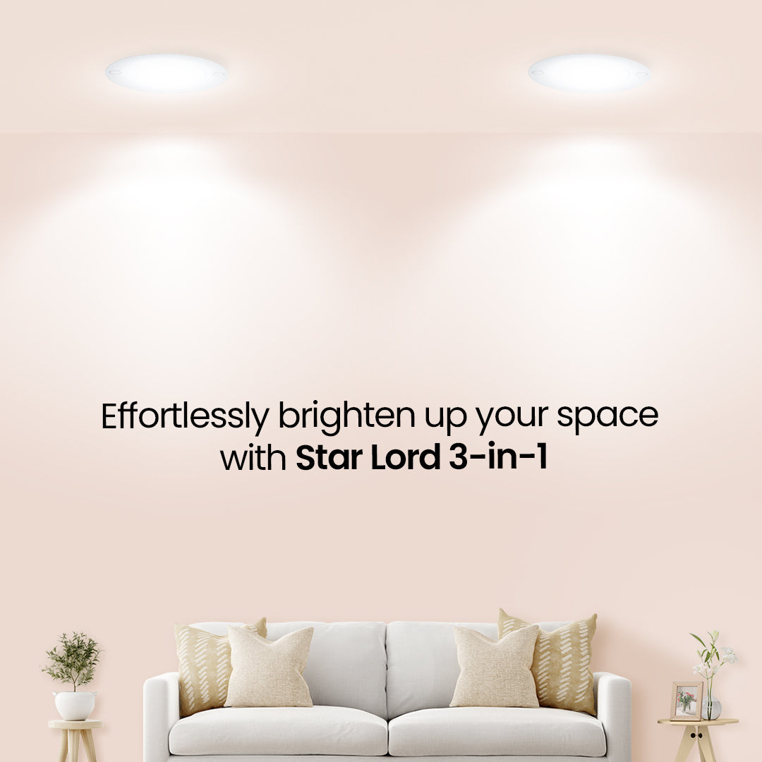 Introducing the Star Lord 3-in-1 Ceiling Light - an illuminating masterpiece. With its extra bright radiance, it transforms any space into a captivating haven. Equipped with surge protection, it ensures your peace of mind. Backed by a generous 2-year warranty, its robust features promise lasting brilliance. Experience versatile lighting options with its unique 3-in-1 design, making Star Lord the ultimate choice for both style and functionality in your space.