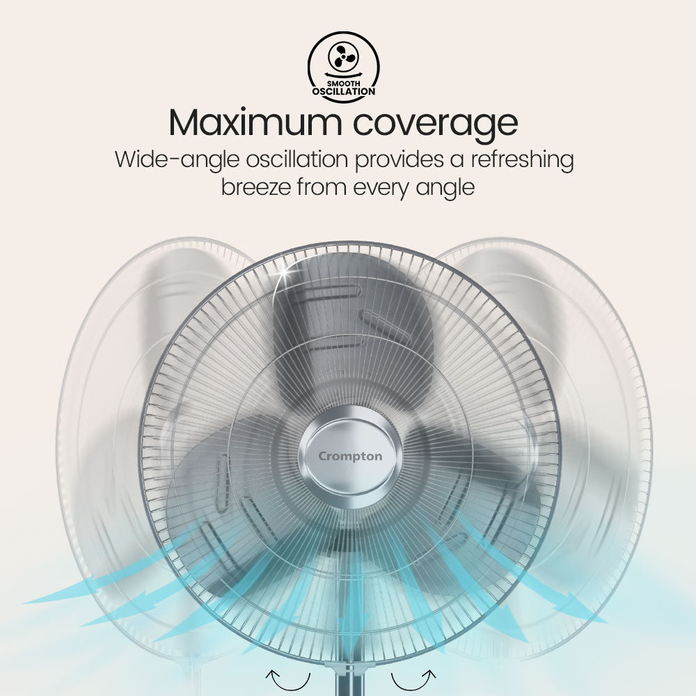 Crompton Pedestal fans offer optimal comfort with their three-speed settings, allowing you to customize airflow as per your preference. With thermal overload protection, safety is prioritized, preventing overheating during prolonged usage. Smooth oscillation enhances air circulation, distributing coolness evenly across the room. Enjoy a refreshing and safe cooling experience with these versatile pedestal fans.