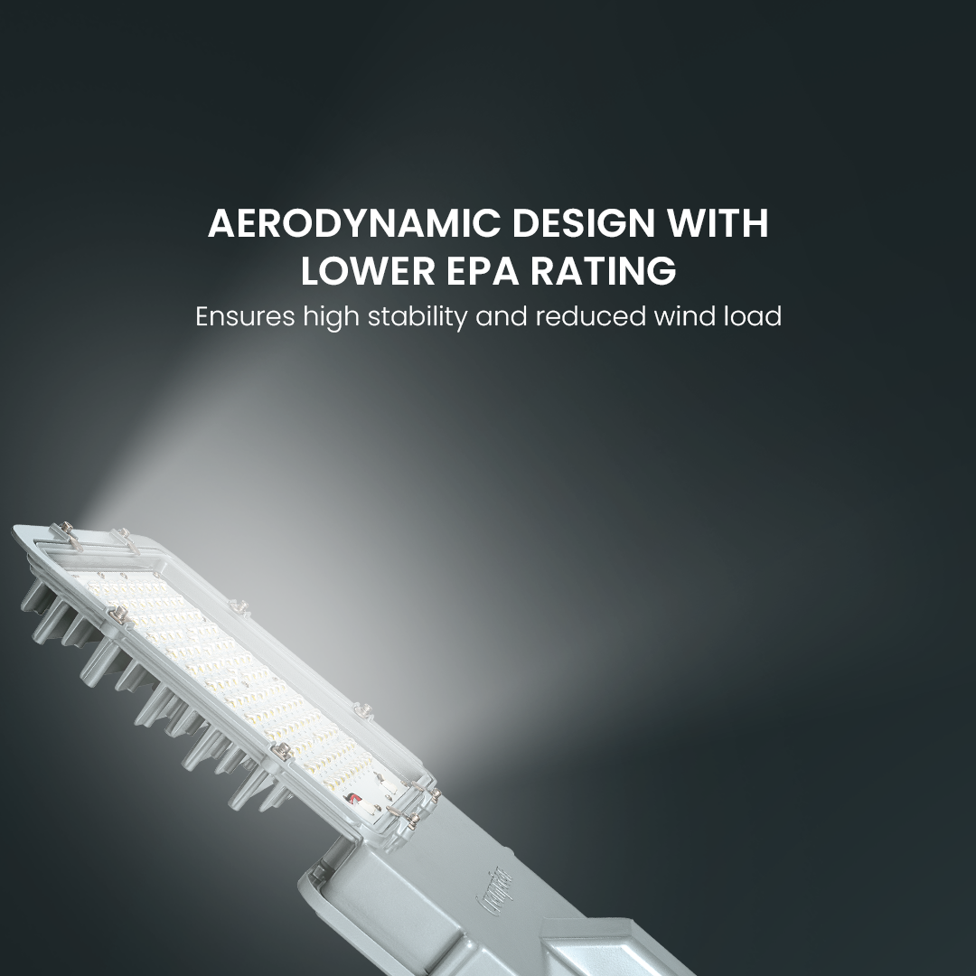 Aplomado Pro Street Luminaire comprises of aluminium die cast housing powder coated in silver grey and tough- ened glass fixed to the housing by means of clamp. Ideal for illuminating access roads and traffic routes. Its aerodynamic design which offers a highly efficient lighting solution. This is perfect streetlight solution to meet your requirements.