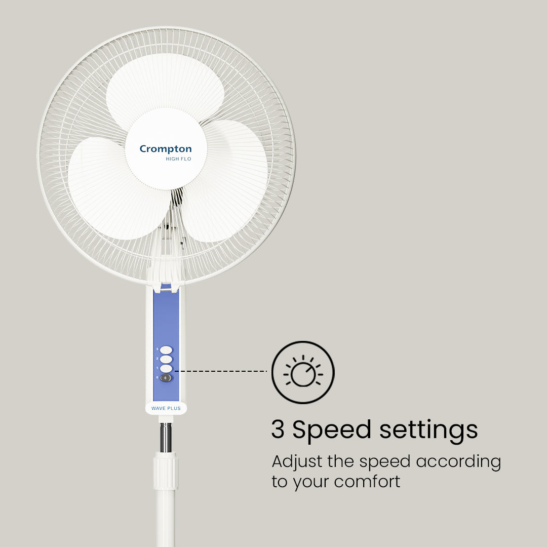 Crompton Pedestal fans offer optimal comfort with their three-speed settings, allowing you to customize airflow as per your preference. With thermal overload protection, safety is prioritized, preventing overheating during prolonged usage. Smooth oscillation enhances air circulation, distributing coolness evenly across the room. Enjoy a refreshing and safe cooling experience with these versatile pedestal fans.