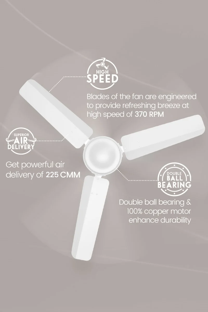 Experience the epitome of comfort with Crompton's High Speed HS. Designed to perfection, these fans are equipped with double ball bearings for enhanced durability, ensuring a prolonged life span. The anti-rust feature guarantees a lasting shine, while the superior air delivery and high-speed settings provide maximum cooling efficacy. Backed by a reassuring 2-year warranty, Crompton Regular designer fans are a seamless blend of style and functionality.