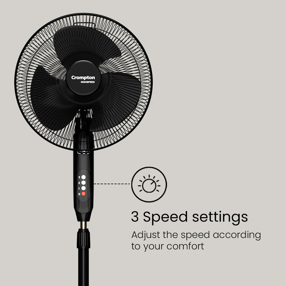 Crompton Pedestal fans offer optimal comfort with their three-speed settings, allowing you to customize airflow as per your preference. With thermal overload protection, safety is prioritized, preventing overheating during prolonged usage. Smooth oscillation enhances air circulation, distributing coolness evenly across the room. Enjoy a refreshing and safe cooling experience with these versatile pedestal fans.
