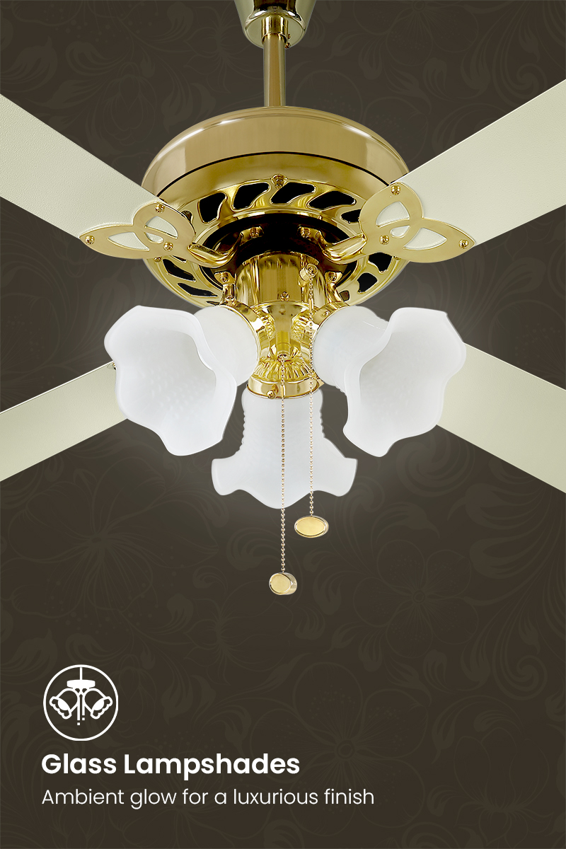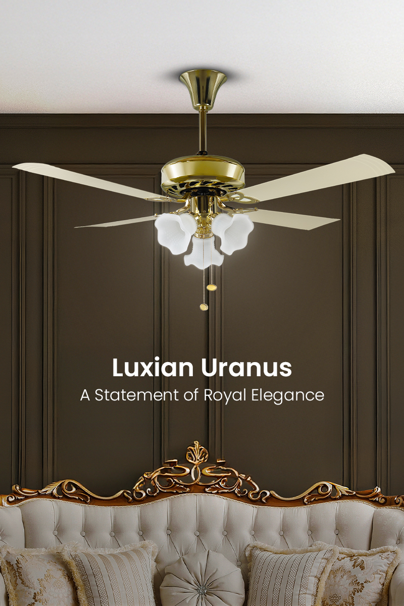 Add a touch of elegance to your space with the Crompton Luxian Uranus Chandelier Ceiling Fan. With magnificent carvings and glass lampshades, it adds a soft ambient glow while becoming a stunning centerpiece for your room. Its high-speed motor runs at 325 RPM, delivering powerful airflow at 215 CMM to keep your space cool and breezy. At just 53W, it's both energy-efficient and strong. The pull-cord feature lets you easily control both fan speed and lighting, adding convenience to comfort. Crafted with a double ball bearing design, the fan runs smoother and lasts longer by reducing internal friction. You can choose between two timeless shades to match your décor perfectly. Make your everyday living more luxurious with the star-rated Luxian Uranus, a perfect mix of beauty, comfort, and ease.