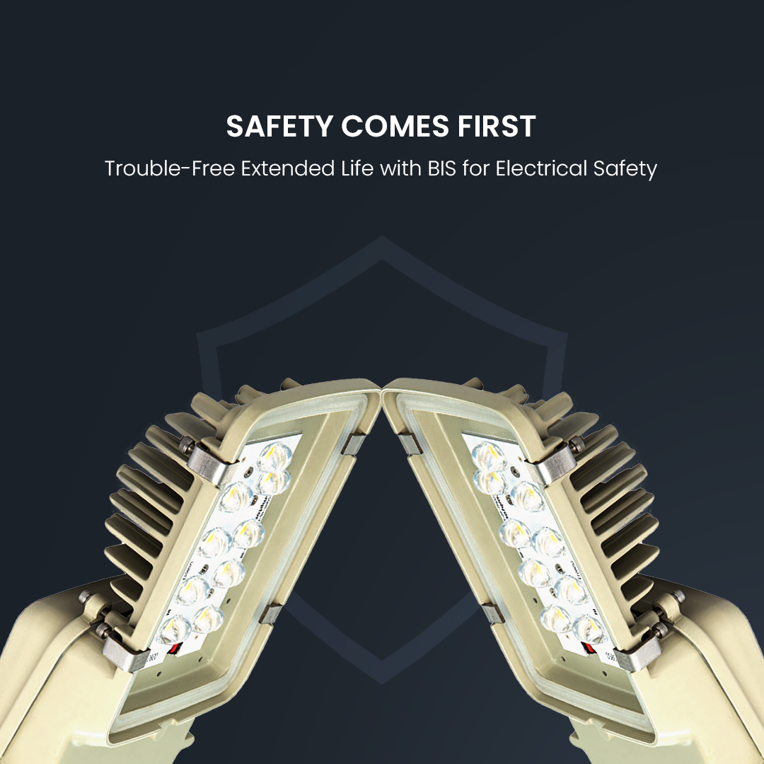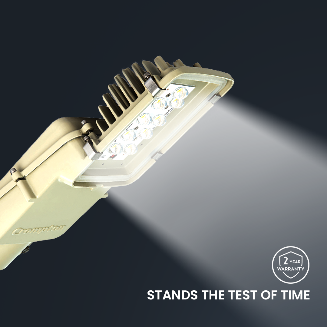 Street lights are aerodynamically designed for all weather conditions with excellent thermal management, made up of pressure die cast housing with toughened glass and high power LED's with secondary optics and IP66 protection.