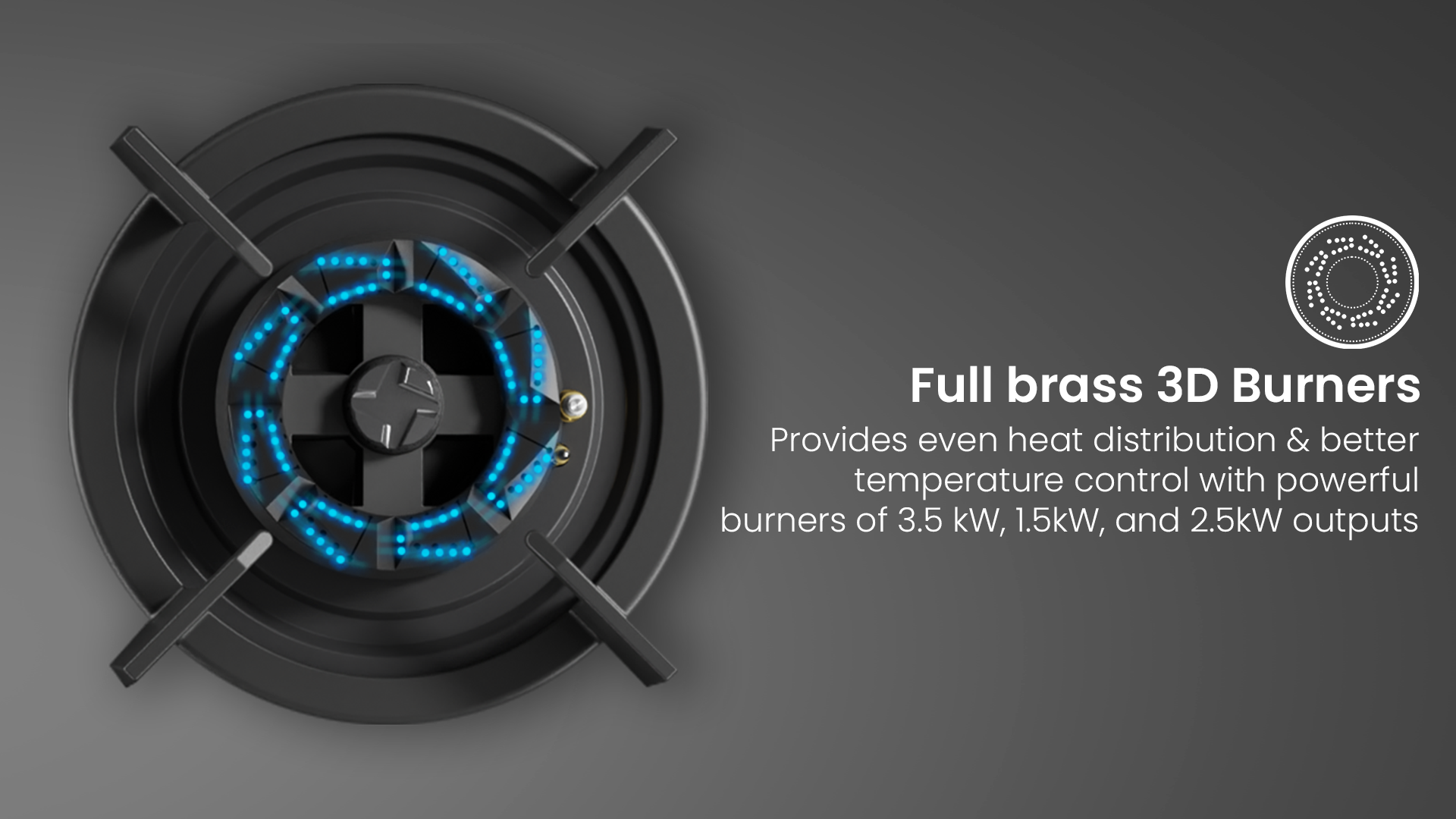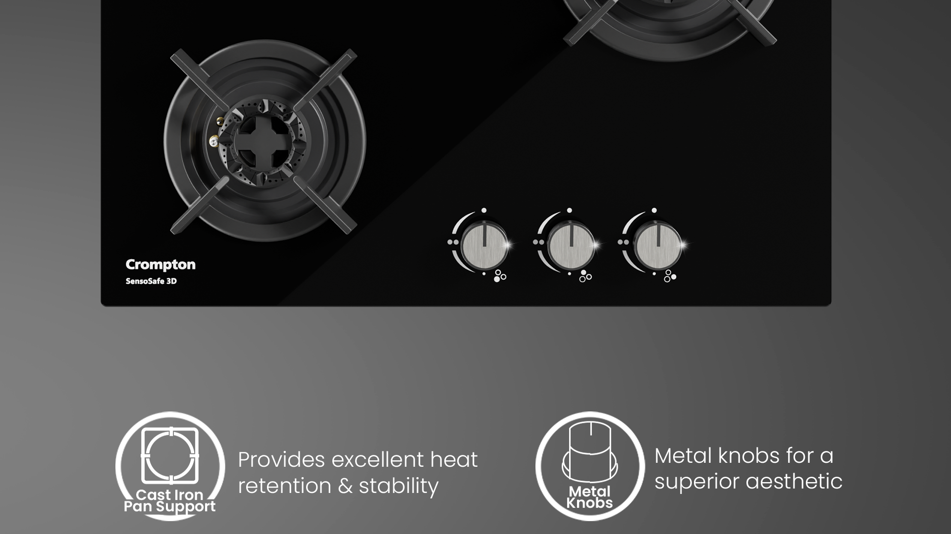 Transform your kitchen with the Crompton SensoSafe 3D Hobs, designed to make cooking smoother and more enjoyable. Equipped with an innovative Flame Failure Device, it automatically cuts off the gas supply if the flame is accidentally extinguished, ensuring your safety and peace of mind. Enjoy the ease of auto ignition, allowing you to start cooking with a simple twist of the knob—no need for matches or lighters. The specially designed 3D burners offer even heat distribution, ensuring every dish is cooked to perfection, whether you're preparing dinner or recreating a family favorite. With the Crompton SensoSafe 3D Hobs, every meal becomes a delightful experience.
