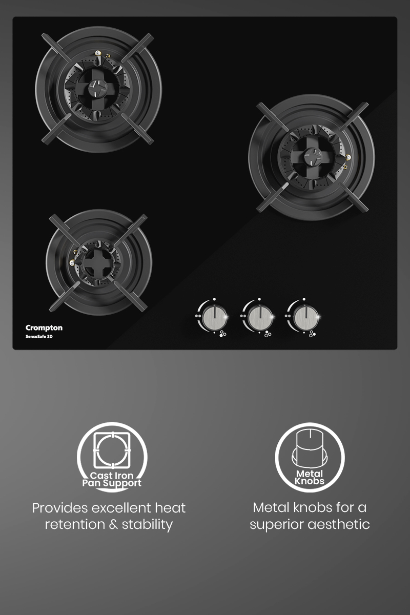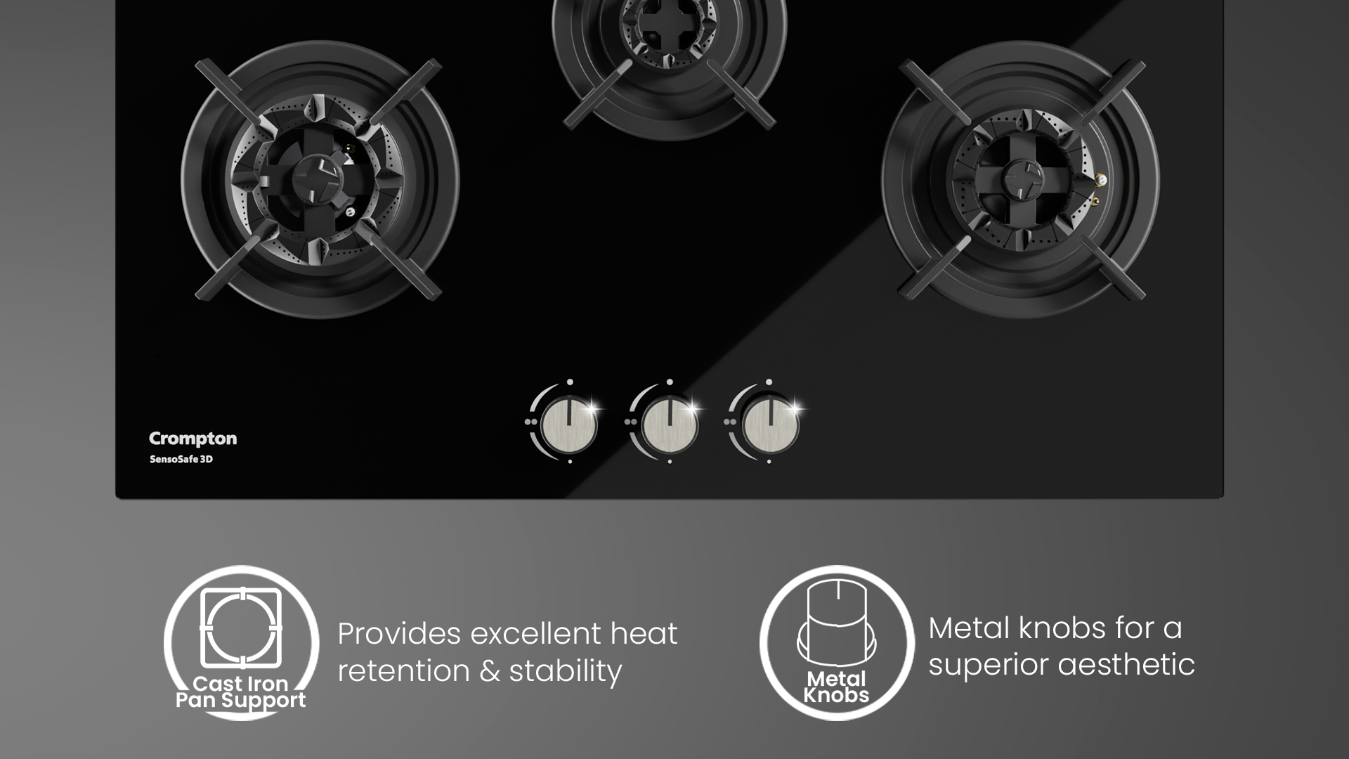 Transform your kitchen with the Crompton SensoSafe 3D Hobs, designed to make cooking smoother and more enjoyable. Equipped with an innovative Flame Failure Device, it automatically cuts off the gas supply if the flame is accidentally extinguished, ensuring your safety and peace of mind. Enjoy the ease of auto ignition, allowing you to start cooking with a simple twist of the knob—no need for matches or lighters. The specially designed 3D burners offer even heat distribution, ensuring every dish is cooked to perfection, whether you're preparing dinner or recreating a family favorite. With the Crompton SensoSafe 3D Hobs, every meal becomes a delightful experience.