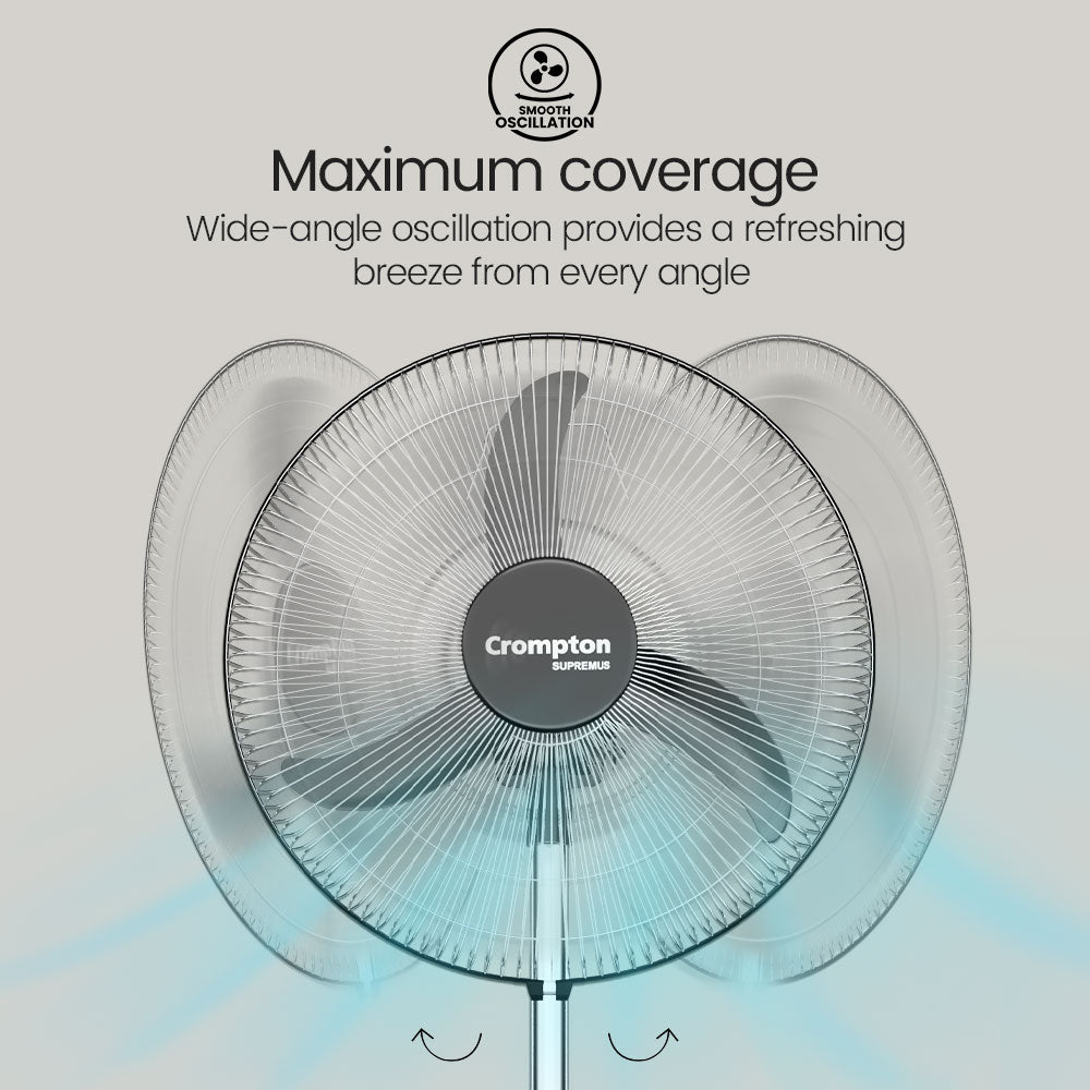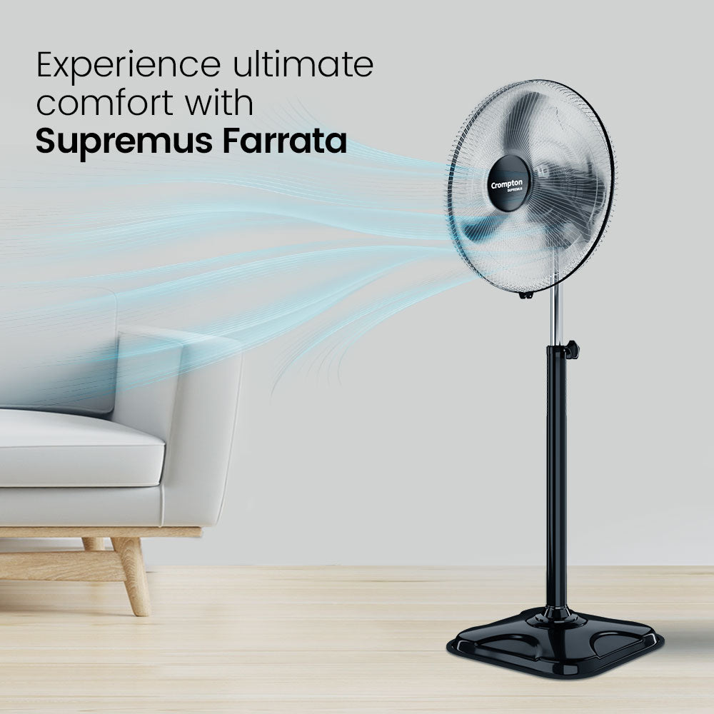 Crompton Pedestal fans offer optimal comfort with their three-speed settings, allowing you to customize airflow as per your preference. With thermal overload protection, safety is prioritized, preventing overheating during prolonged usage. Smooth oscillation enhances air circulation, distributing coolness evenly across the room. Enjoy a refreshing and safe cooling experience with these versatile pedestal fans.