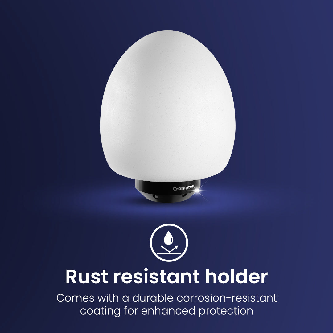 The Solarion Eclipse Oval Gate Lamp features a durable plastic body with a sturdy build, ensuring long-lasting performance. With IP65 certification, it withstands harsh weather conditions, while its rust-resistant B22 holder ensures reliability in any environment.