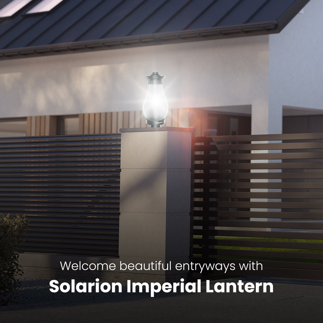 Welcome guests with the elegance of the Solarion Imperial Lantern, the perfect addition to your entryways. Crafted with care to decorate your home with grace and style, this lantern features advanced IP65 water resistance technology, ensuring reliable performance in any weather condition. With its rust-resistant holder providing enhanced protection, this lantern promises durability and longevity. Fashioned from durable plastic, it radiates timeless charm while offering a luminous and enduring glow, making it the ideal choice for enhancing your outdoor decor.